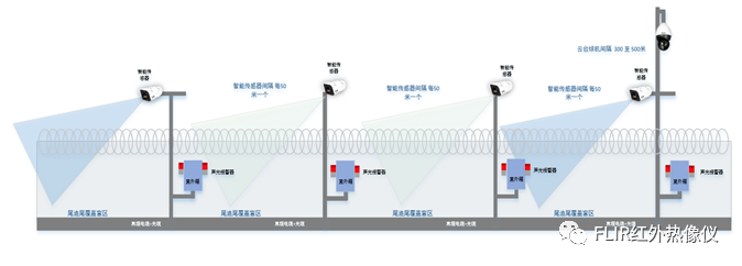 智能传感器系统通过不同的安装方式解决不同区域的问题,下面是围网式周界,将智能传感器直接安装在围网正上方。